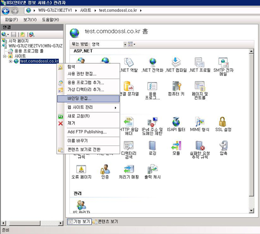 ※ IIS6.0 과 IIS7.0 인증서 적용 차이점. iis7.0 부터는 인증서 적용을 각 웹사이트별 적용이 아닌 전역설정으로 인증서 적용 이됩니다. 웹사이트 바인딩 단계에서 원하는 인증서를 찾아 선택 하셔서 적용 하시면 됩니다. 이에 따라 한개의 웹사이트에 2개이상 인증서를 적용 하여 사용 가능 합니다. 단. 동일 443 번 포트는 사용 불가능 하고, 추가 하는 인증서는 다른 포트를 사용 하셔야합니다. ※ iis7.0 인증서 만료 연장시 |
