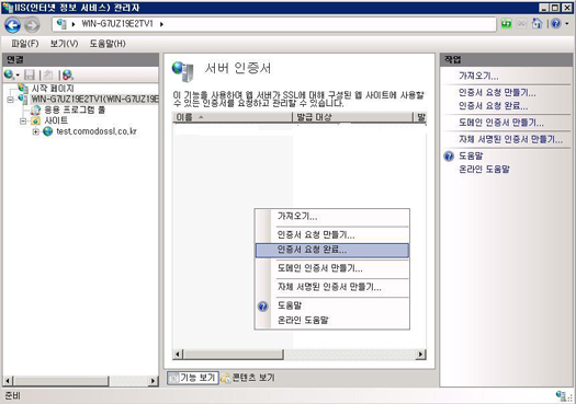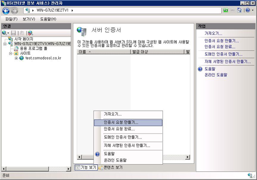 [1] 개인키 생성과 CSR 파일 생성 1. 시작 -> 프로그램 -> 관리도구 -> 인터넷 서비스 관리자